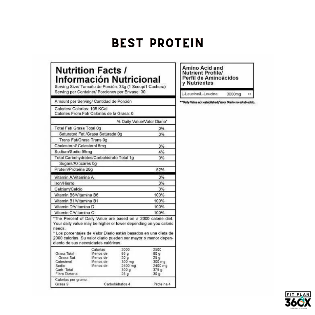 BEST PROTEIN es una mezcla 3 en 1, Proteína aislada de suero de leche de altísima calidad, Caseina Micelar (proteína de absorción lenta) y Leucina.